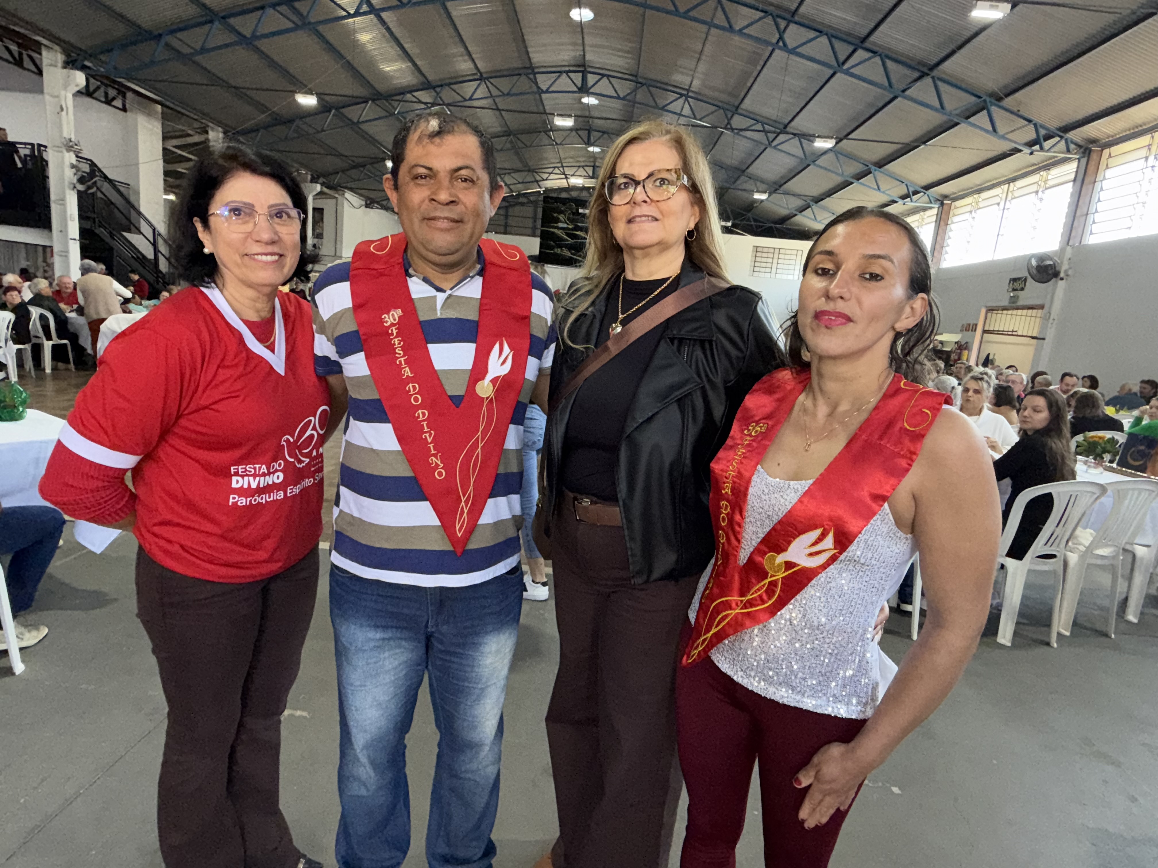 A 36ª Festa do Divino, da Paróquia Espírito Santo. movimentou a Santinha no último fim de semana, mais especialmente o Arroio Grande. A programação foi muito prestigiada pela comunidade, com destaque para os almoços de sábado, 16, e de domingo, 17, que teve a presença de mais de mil pessoas. O dedicado casal festeiro desta edição da Festa do Divino foi Franciele Stuelp e João Artidor de Oliveira que tiveram de dezenas de colaboradores em vários setores, principalmente na cozinha nos preparo dos assados, saladas e dos doces e tortas.