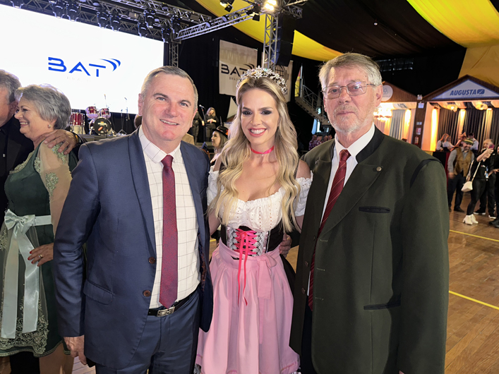 Na visita à Imply no começo da semana, as soberanas da 38ª Oktoberfest de Santa Cruz do Sul foram presenteadas pelo anfitrião Tironi Paz Ortiz com um voo panorâmico de helicóptero sobre a Santinha.