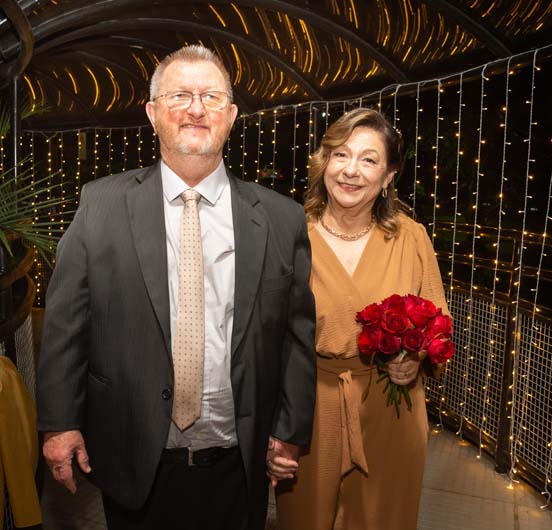 Com muita alegria, Gladis Terezinha e Ernani Pfaffenseller, com o assessoramento de Michele Henn Waechter, receberam familiares e amigos para festejar seus 50 anos de casamento, as bodas de ouro, no salão do Costa Leste, inclusive com a animação do grupo Adam.