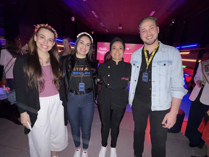 Eduarda Gassen, Sandrine Gomes, Patrícia Pellenz e Gustavo Guaragni receberam as soberanas para o torneio de boliche proporcionado pela Imply
