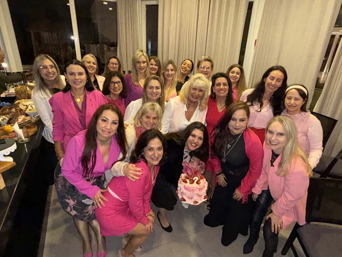 A professora e diretora Janaína Venzon aniversaria neste sábado e foi surpreendida no meio da semana com uma festa em sua homenagem, num dos salões do Serra Azul