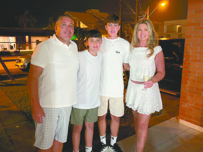 - A atriz santa-cruzense Louise Nagel, o marido e ator André Segatti e o filho Bryan vieram à Santinha para participar da festa de fim de ano com os familares dela.