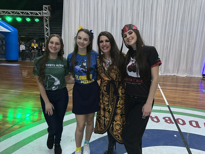 As equipes Ernesto Alves, Floriano Peixoto e Santa Cruz, com seus mascotes, deram um show de vibração e criatividade na abertura do Ernestão 2023 na noite da terça-feira, 15, no Ginásio Poliesportivo Arnão. A prefeita santa-cruzense Helena Hermany, secretários, vereadores, representantes do governo estadual e convidados prestigiaram a abertura, muito bem organizada e conduzida pela equipe da diretora Janaina Andrea Halmenschlager Venzon.