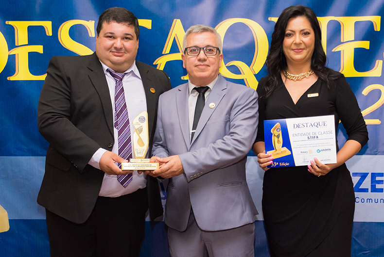 Entidade de Classe: Stifa - O secretário geral Eder Roberto Figueira e o tesoureiro Rangel Marcon receberam o troféu da contadora da entidade Andréa do Nascimento | Foto: Alexandre Ferroni/Agência Francisco Frantz