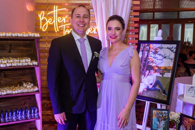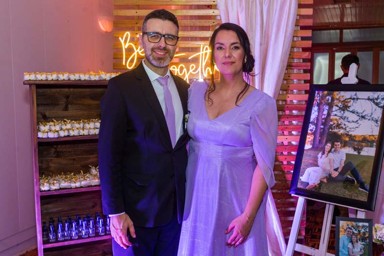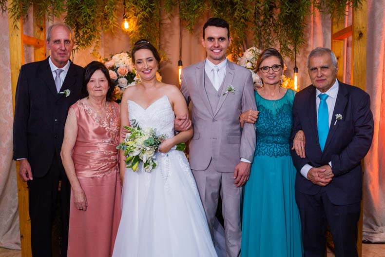 Ani Cristina Haas e Daniel Teixeira foram unidos no anoitecer do último sábado, 6, na Catedral São João Batista e depois, ao lado dos seus pais Eligia Maria e Paulo Renato Haas e Enilda Luiza e Antônio Alberto Ramos Teixeira e o assessoramento da equipe de Rogério Santos, receberam para os brindes e o jantar nupcial nos salões da AABB de Santa Cruz do Sul.