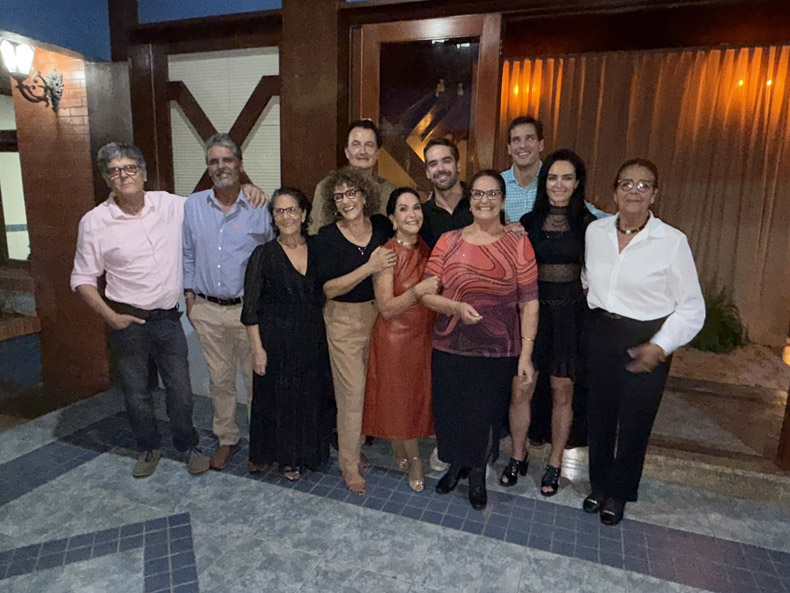 Nara Regina Bock e o marido, José Gaspar Hermes, na comemoração surpresa do niver dela na noite do sábado passado, 11, no Salão Azul da sede campestre do União Corinthians, com seu sobrinho, o governador do RS, Eduardo Leite, e irmãos que vieram de Pelotas e outras cidades.