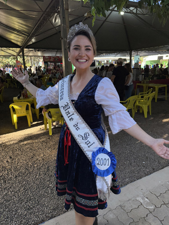 Vanessa Manfio na 8ª Feirasol, no encontro das ex-soberanas de Vale do Sol.