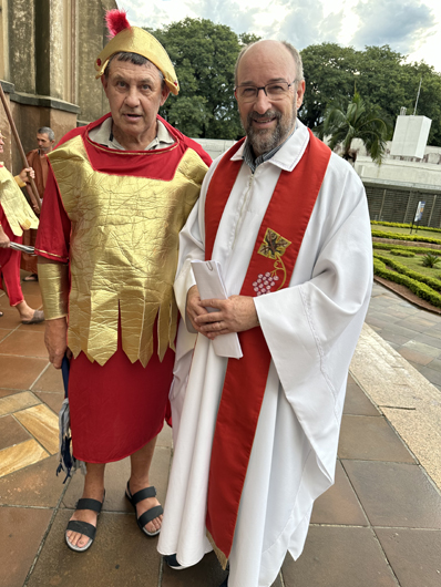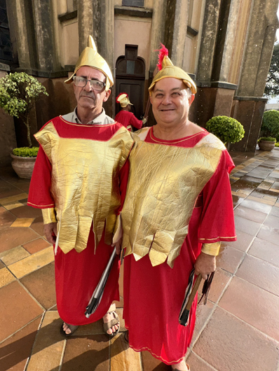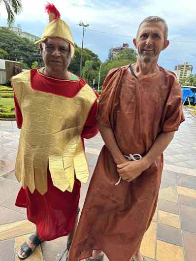 Os atores amadores e voluntários das comunidades São Luís, do Monte Verde, e Nossa Senhora do Carmo, da Margarida, encenaram na Sexta-feira Santa, 29, a Caminhada da Paixão de Cristo ao Parque da Santa Cruz. A caminhada começou, depois que a chuva passou, diante da Catedral São João Batista e terminou no Parque da Cruz.