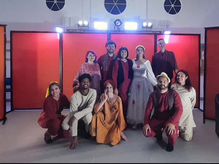 A atriz e diretora teatral Pilly Calvin e os atores Juliana Leão, Gabriel Bellga, Bruna Bandeira, Eduardo Cezar, Maria Cristina Peçanha, Isabela Pachaly, Luciano Hoffmann, Carlos Escouto e Marina Vieira, do espetáculo Viva a Vida, no final das aplaudidas apresentações, domingo, 11, na Casa Chico.