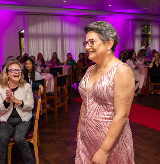 A Liga Feminina de Combate ao Câncer de Santa Cruz do Sul, com a liderança da presidente Michele Henn Waechter, e o Projeto Empodera, com a coordenação de Nadiane Nardi, promoveram na última terça-feira, 12, um momento muito especial no Salão Rosa do União Corinthians. Um chá com desfile, onde as pacientes em tratamento oncológico desfilaram na passarela. Com muita elegância, as modelos apresentaram vestidos de festa e trajes típicos alemães de Amanda Boutique.