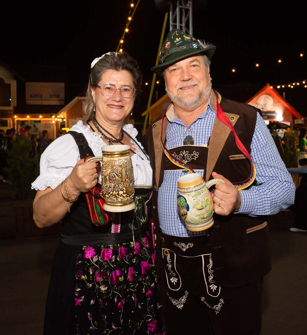 Além dos santa-cruzenses, muitos aderindo aos trajes típicos, centenas e centenas de visitantes das mais diversas procedências circularam na Santinha e no parque e salões da Oktoberfest na primeufa etapa da festa.