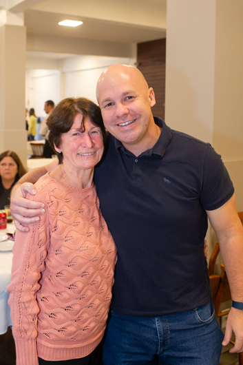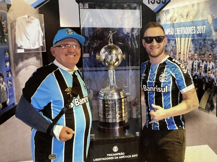 Nelson Kich e o neto Christian Augusto Kich, na Arena do Grêmio, que também foi atingida pelas enchentes.