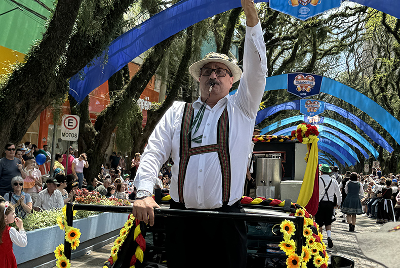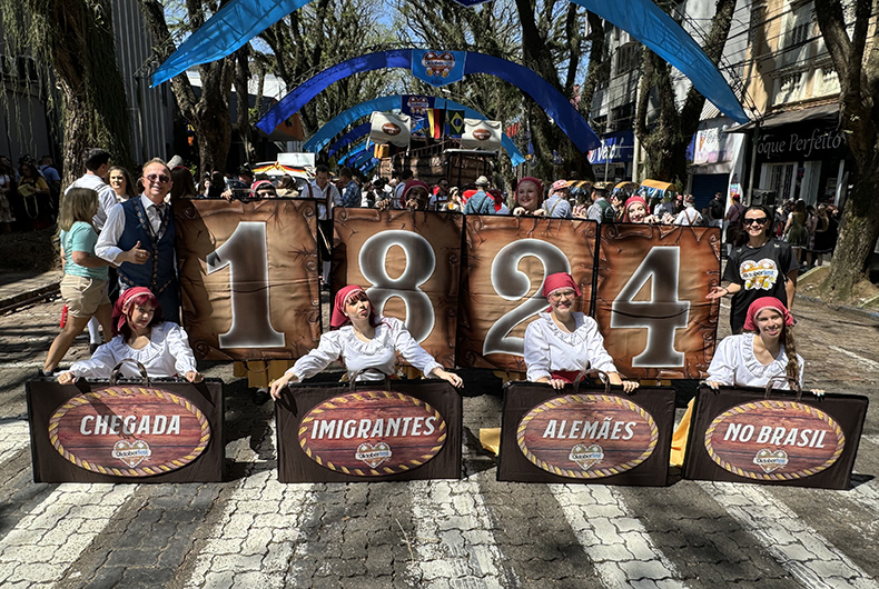 Às 10h35 desse domingo, 13, iniciou o primeiro desfile temático da 39ª Oktoberfest de Santa Cruz do Sul na esquina da Mal.Floriano e Ramiro Barcelos e no mesmo local, terminava às 12h35. Foram duas horas de muita empolgação, corações a mil, música, interação e a exaltação aos 200 anos da Imigração Alemã no RS e 175 anos da Imigração Alemã em Santa Cruz do Sul. Fala-se que em torno de 6,8 mil pessoas participaram. Muitos destaques, principalmente para os carros, em especial o que lembrava a caravela Argus dos imigrantes, das soberanas e da Esperança e Resilência, simbolizado pelo cavalo Caramelo. Domingo próximo tem mais.