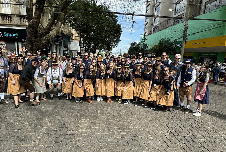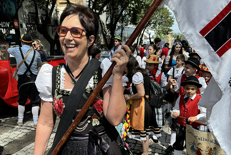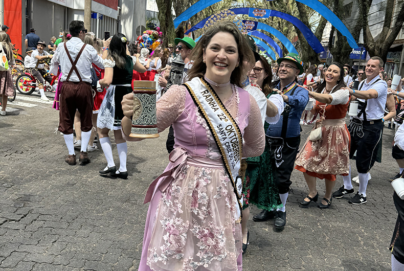 Rogéria Inez Mohr, radicada em São Paulo, diz que “a Oktoberfest de Santa Cruz do Sul está muito linda, a cidade em festa, colorida e alegre, desfile maravilhoso.” Ela parabeniza os organizadores.
