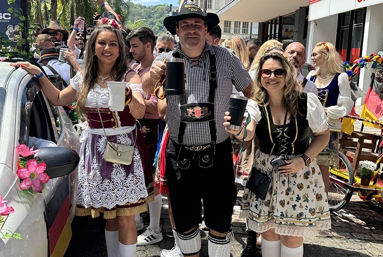 - No primeiro desfile da 39ª Oktoberfest, a Fubika do Fritz foi guiada por Marco de Lima, ao lado da esposa Cristiane e da filha Isabela.
