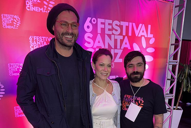 Thiago Lacerda, Hermila Guedes e um dos organizadores do festival, Diego Tafarel