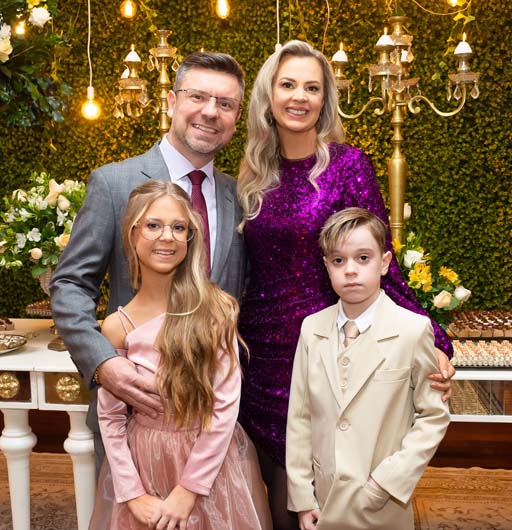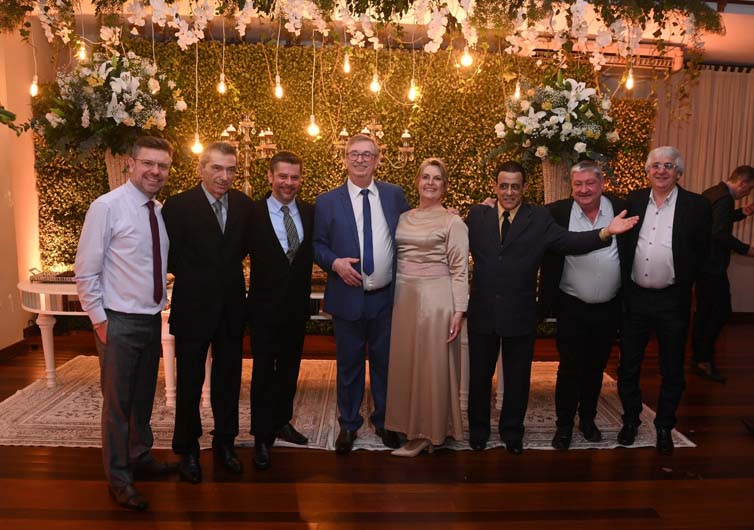 A comemoração dos 50 anos de casamento – bodas de ouro – dos chefs do Le Chef, Noeli e Eugênio Paulo Baier, foi brilhante. Com assessoria da Promopres, o casal jubilar, ao lado da filha, Michele Baier Kist, do genro Evandro Kist, dos netos Isadora e Pedro Henrique Baier Kist e das filhas gêmeas Paola Baier e Paloma Baier e Eduarda Rosa, recebeu familiares e amigos nos salões do Tênis Clube Santa Cruz. Em breve cerimônia, o pastor Lindomar Raach abençoou o estimado casal. Depois dos brindes e do ótimo jantar, o Anos Dourados animou as danças noite afora.