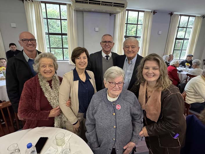 A programação do Dia do Ex-Aluno do Colégio Mauá, no último domingo, 13, foi coroada com um grandioso almoço no Tênis Clube Santa Cruz com a presença de ex-alunos, ex-professores, como o ex-diretor Osvino Toillier, a ex-aluna e ex-professora Iria Bender com seus 96 anos e formada em 1950 – jubilar de 75 anos – , o atual diretor Nestor Raschen e o vice-diretor Mártin Brackmann Goldmeyer. Muitos ex-alunos vieram de longe, como o engenheiro Kunibert Kurt Thurm, que reside em Jundiaí e sempre comparece no encontro. Na parte da manhã, os ex-alunos jubilares foram recebidos e homenageados no teatro do educandário.