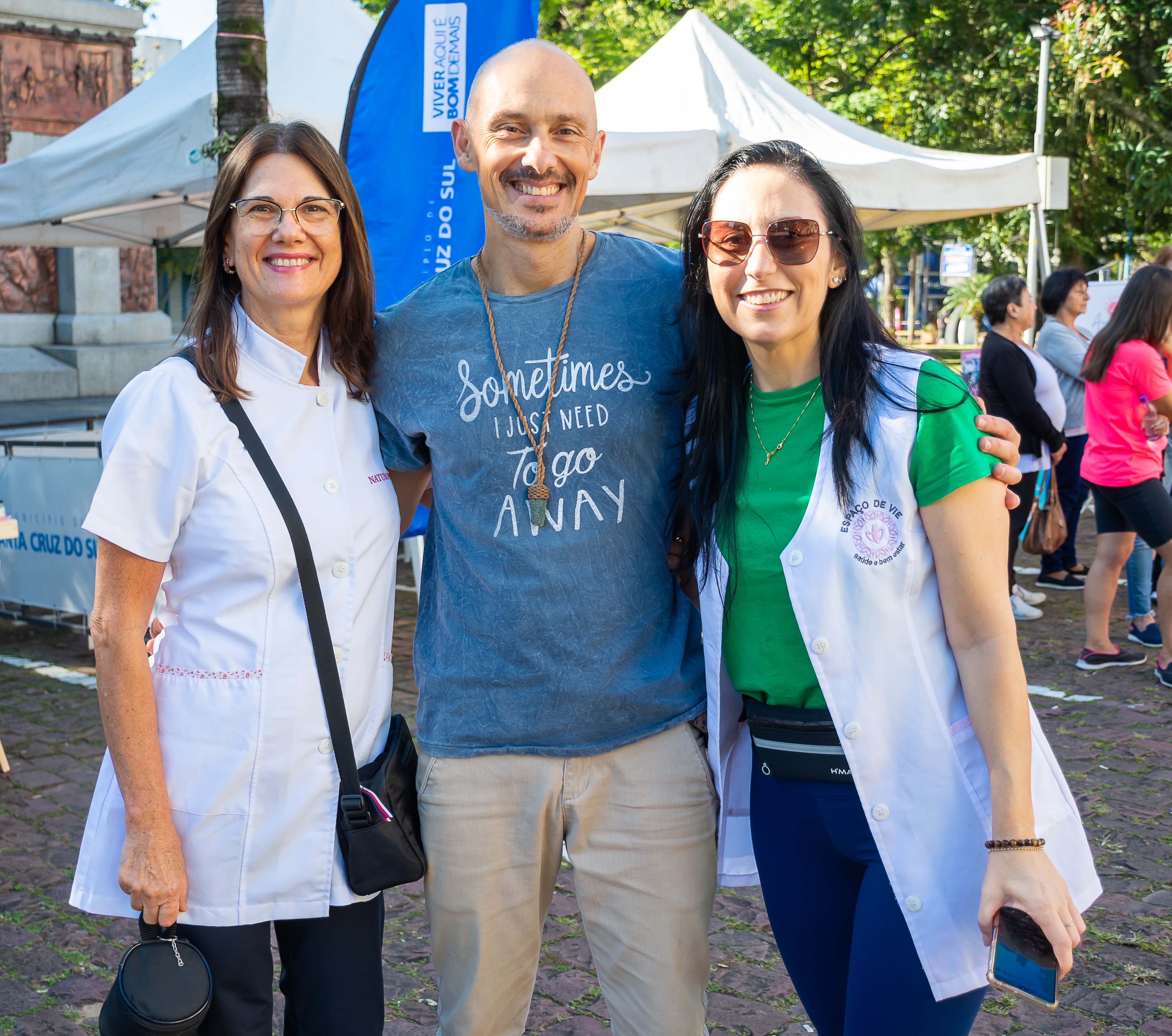 A ativa Fátima Siqueira, do Espaço De Vie, comandou no sábado, 20, o 3º Encontro de Saúde e Terapias Integrativas na Praça da Bandeira, inclusive a tradicional Caminhada Rumo à Saúde e Bem-Estar, em sua 15ª edição. Entre muitos atrativos, a destacar a participação da cantora Dorivani Ramos e do grupo Alegria Não Tem Idade, de Vera Cruz.