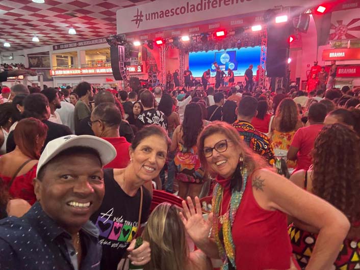 Lúcia e Lair Ipê da Silva e Maria Cristina Peçanha, aproveitando a recente estada no Rio de Janeiro, foram à quadra do Salgueiro para assistir ao show de Jorge Aragão e da Furiosa, a famosa bateria da escola de samba.