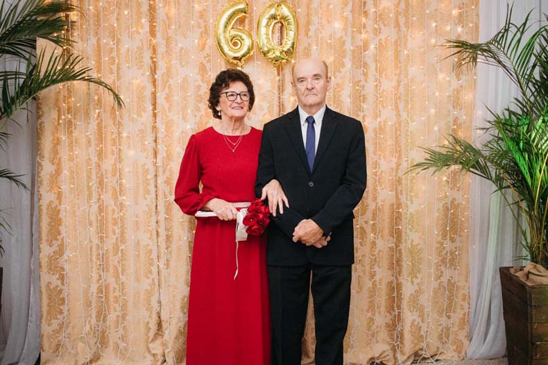 1. Petronila e Arnildo Scherer comemoraram 60 anos de casamento, as bodas de diamante, no dia 8 de junho, com uma celebração na Igreja Santos Mártires das Missões, de Linha Santa Cruz, e uma confraternização no Salão Assmann, em Linha João Alves.