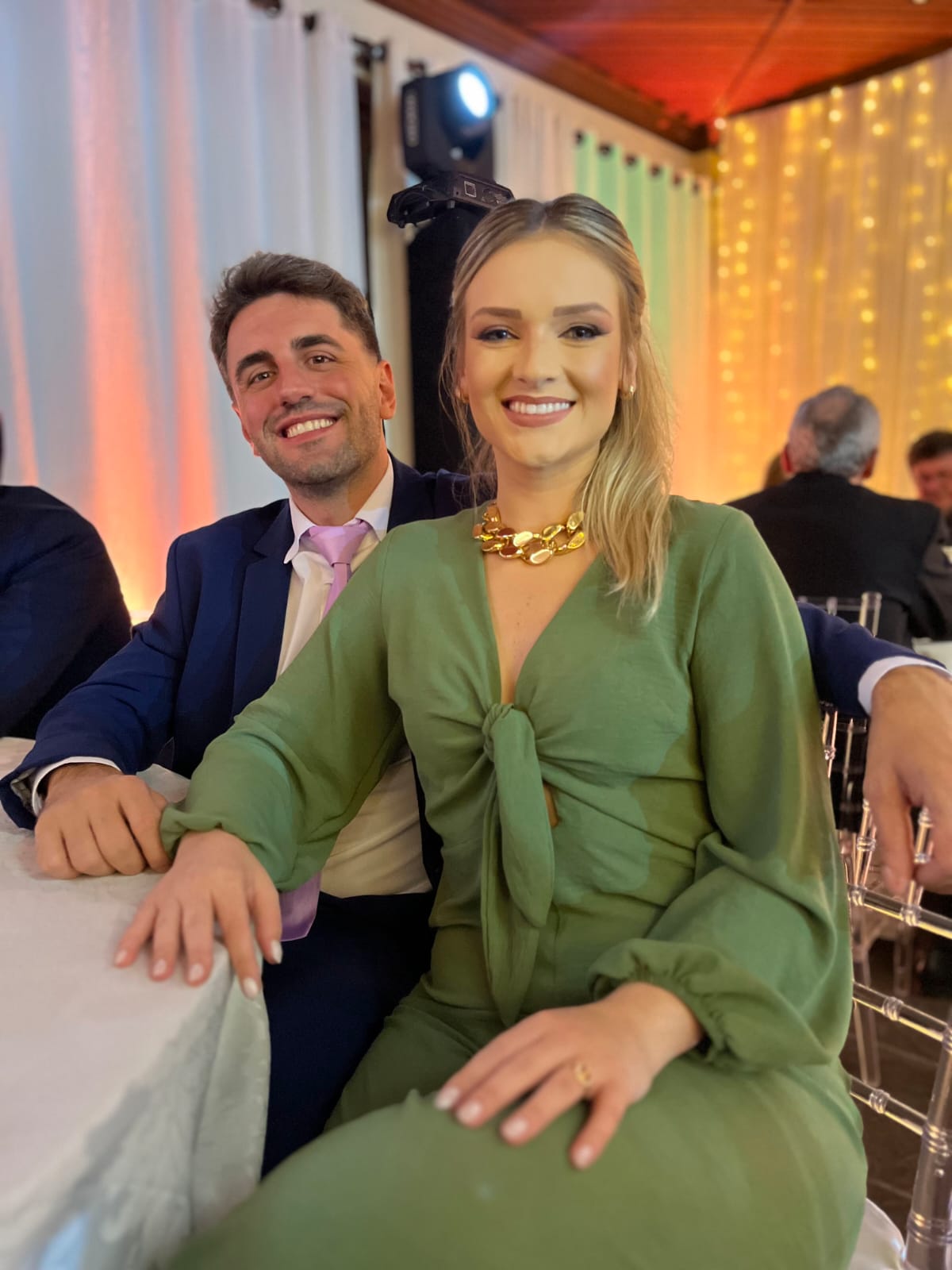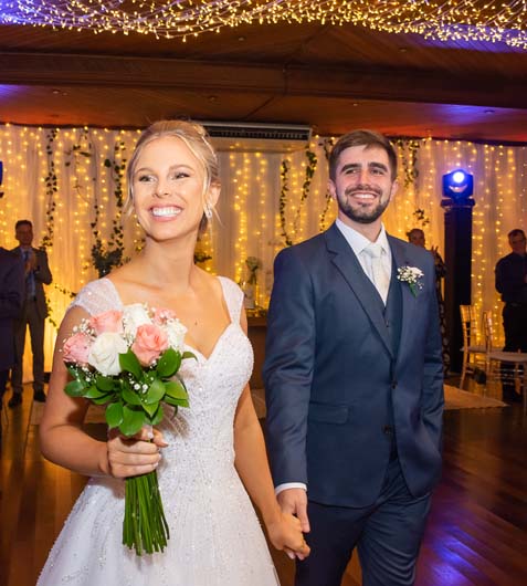 Amanda dos Santos e Augusto Carlos Böhm foram unidos no entardecer do sábado passado na Catedral São João Batista.Depois, com seus pais Claudéria e Carlos Alberto dos Santos e Rejane e Sérgio Böhm, receberam para os brindes nos salões do Santa Cruz Country Club, com os acordes do violinista Luís Eduardo Kaufmann. O noivo e o pajem Hugo Böhm Schubert surpreenderam a noiva e convidados interpretando uma canção. A festa foi abrilhantada noite afora pela música de Marcel Knak e sua banda.