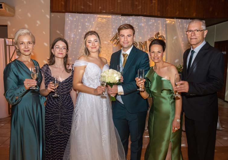 A alemã Katharina Dietz e o santa-cruzense Arthur Kniphoff da Cruz foram unidos na Catedral São João Batista, no começo da noite do sábado passado. Depois, ao lado dos pais, Tanja Dietz e Márcia e Eliseu Kniphoff da Cruz, receberam familiares e amigos na Adunisc. Os noivos voarão neste sábado para a Alemanha onde residem na cidade de Kalsruhe.