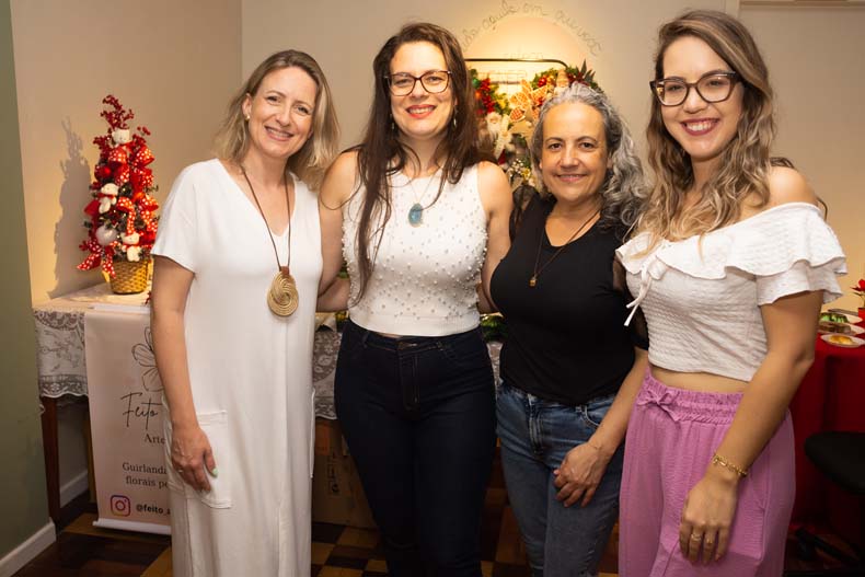 Com vinte e duas expositoras, a voz e violão de Alcemar Machado, a esmerada organização de Manuela Kappel Weigel, a cap da Donna da Noite, no sábado, 7, foi realizada mais uma edição da Feira Santa’s Empreendedoras em vários ambientes da Casa Pranna. Muitos amigos, familiares e visitantes circularam por lá.
