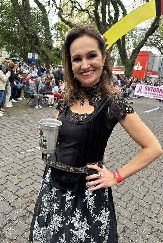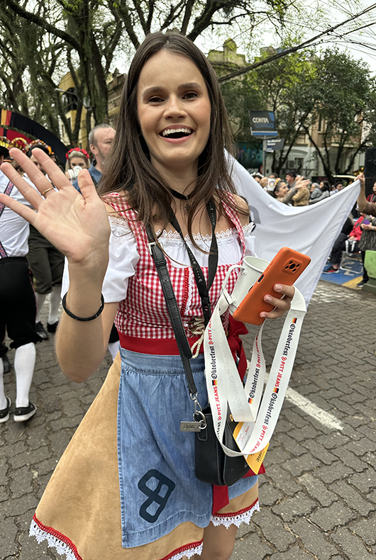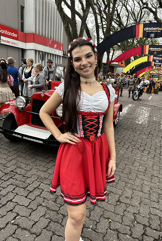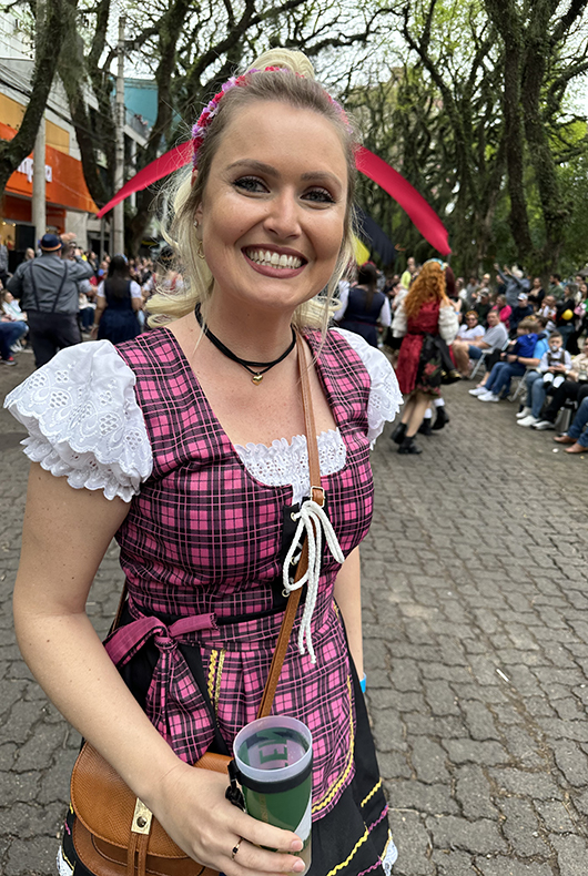 A princesa Simone Scholz desfilou domingo passado representando a corte da 1ª Oktoberfest de Santa Cruz do Sul.