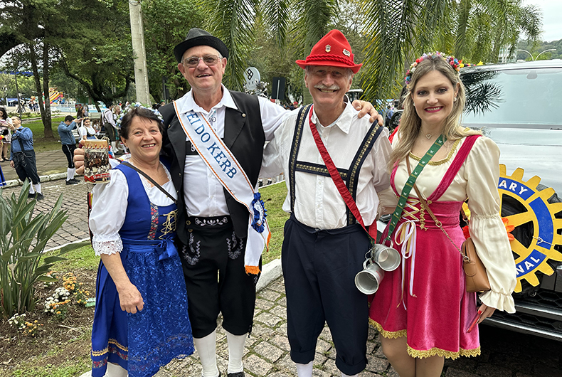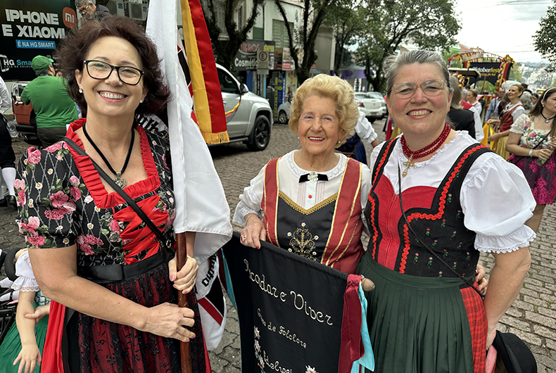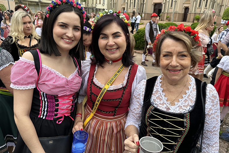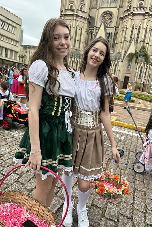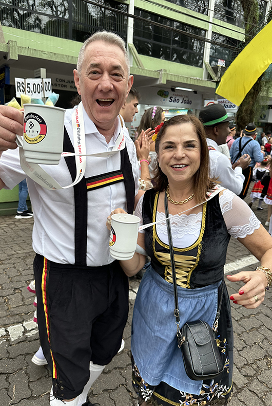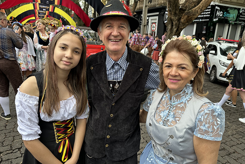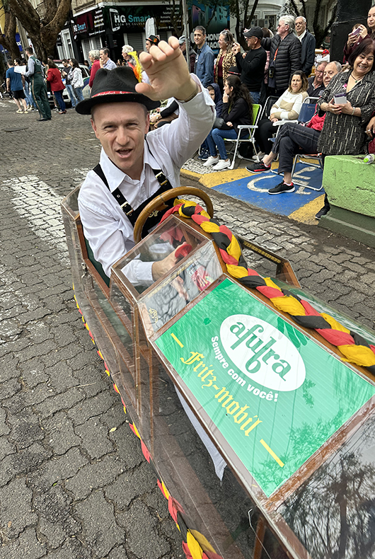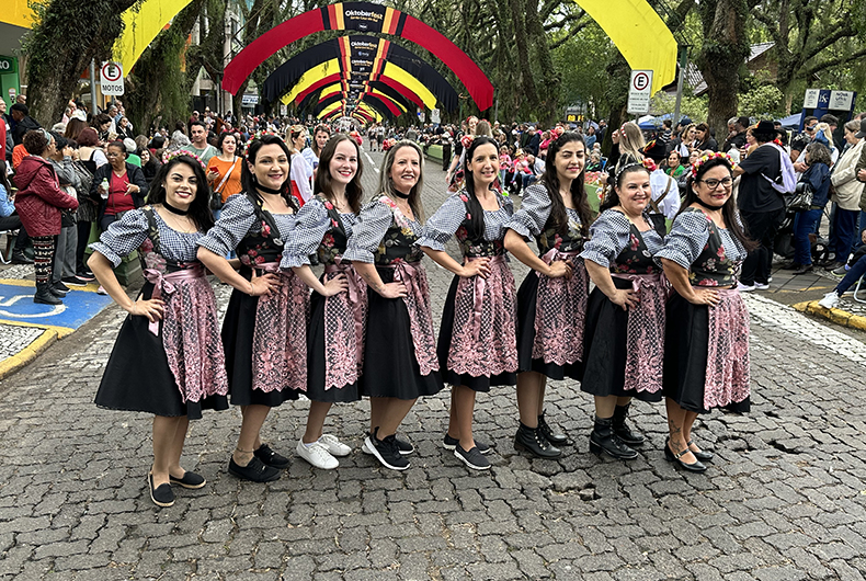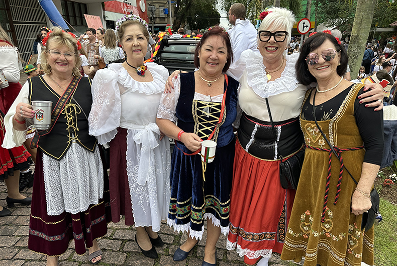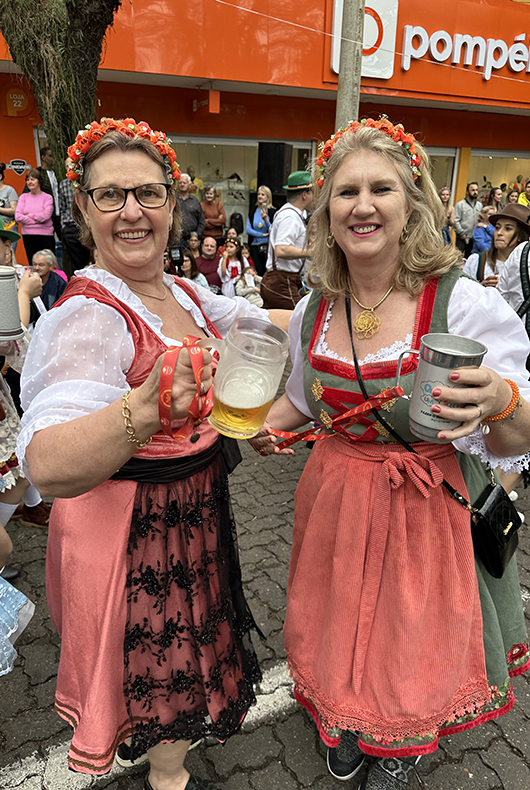 Com aquela marcante e contagiante animação de centenas de participantes, o primeiro grande desfile da 38ª Oktoberfest parou a Santinha na manhã do domingo. Foi uma avalanche de energia e coreografias. Tudo em nome da alegria. E vem mais por aí.