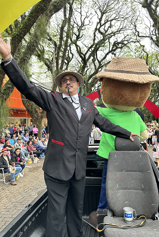 O Festival Nacional da Galinha Recheada do FC Rio Pardinho, pela primeira vez, participou no domingo passado do desfile da Oktoberfest de Santa Cruz do Sul.