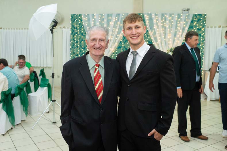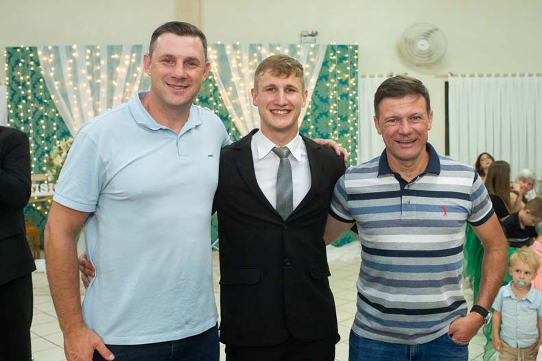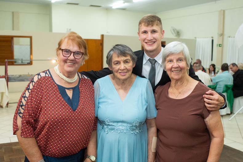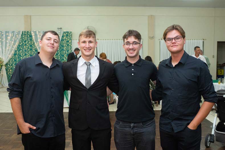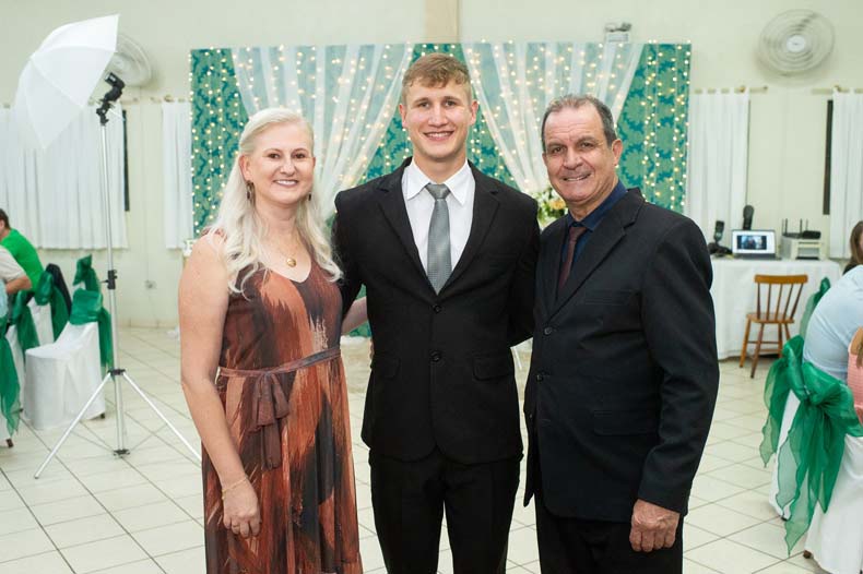 Augusto Jost Lawisch, ao lado dos pais Elisa e Inácio Lawisch e da namorada Maria Eduarda Voese, recebeu familiares e amigos na noite da última sexta-feira, 23, na Comunidade São Luiz, no Monte Verde, para festejar sua formatura no curso de Educação Física – Bacharelado.
