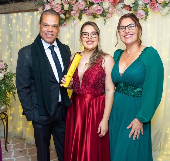 Ao lado dos pais Patricia e Vicente Luís da Silva, com o assessoramento de Rogério Santos, Laura Barcelos da Silva festejou sábado passado sua formatura no curso de Farmácia da Unisc.