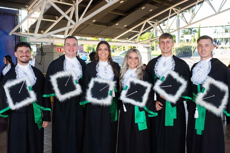 Os aplausos para os diplomados pela Unisc nos cursos de Pedagogia, Educação Física – Bacharelado e Licenciatura, Geografia, História, Física, Matemática e Letras – Português e Português e Inglês.