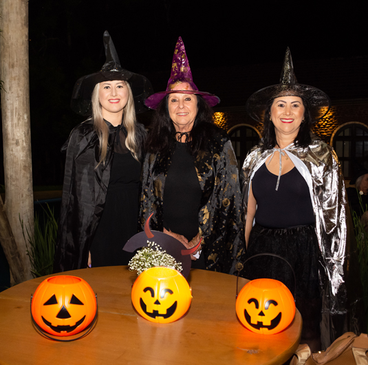 As Amigas Poderosas – Elisiane Woldemar (Calcita), Janaína Andrea Halmenschlager Venzon (Rubi), Grazieli Godoi (Hematita), Alessandra Lampert (Pirita), Ana Paula da Costa (Turmalina), Sabrina Bertram (Sodalita) e Lizete Ertel (Esmeralda) – e suas mais de 90 convidadas estiveram no começo da semana na Casa Nogueira, confraternizando na badalada Festa das Bruxas, em ritmo de Halloween. Foi um show de sensacionais fantasias e de muita energia boa.