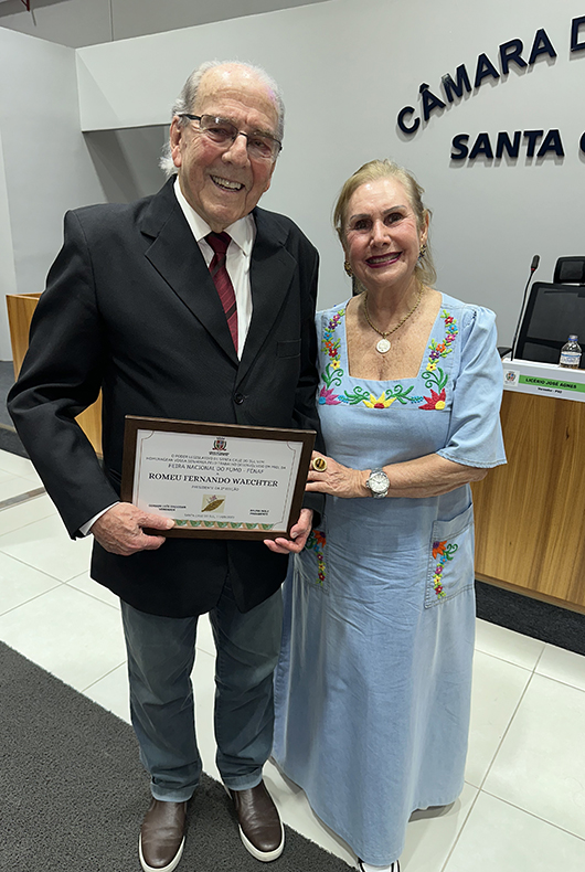 A Festa Nacional do Fumo, a Fenaf, que projetou Santa Cruz do Sul para o Brasil e o exterior, foi homenageada na segunda-feira pela Câmara de Santa Cruz do Sul, numa proposição do vereador Gerson Luís Trevisan. Foram homenageados o presidente da 2ª Fenaf, Romeu Fernando Waechter; o saudoso presidente da 1ª e 3ª Fenaf, Arcádius Swarowsky, representado por seu filho Eduardo Swarowsky; a rainha da 1ª Fenaf, Esther Matte Dreyer; e a rainha da 3ª Fenaf e do Centenário de Santa Cruz do Sul, Heloísa Kist Knabach.