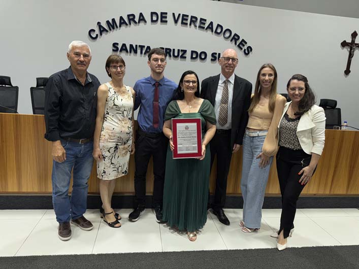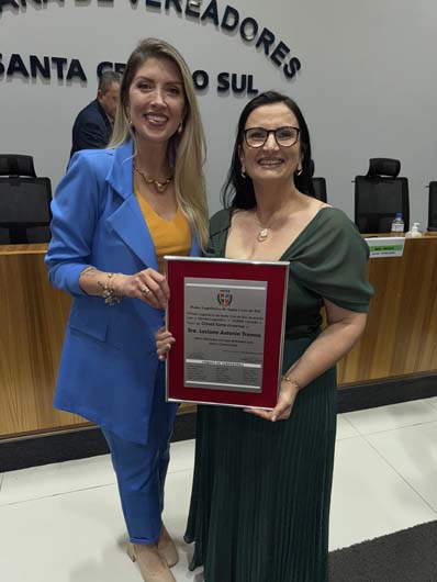 Uma bênção especial do seu irmão, o padre Alberto Tremea, marcou ainda mais a bonita sessão solene na Câmara de Vereadores de Santa Cruz do Sul, na segunda-feira, de entrega do título de Cidadã Santa-cruzense a Luciana Antonia Tremea, da liderança do Grupo do Bem, de grande atuação em Santa Cruz e outras cidades do RS. A vereadora Nicole Gars-ke Weber foi autora da proposição da homenagem.