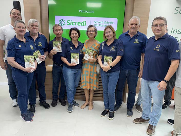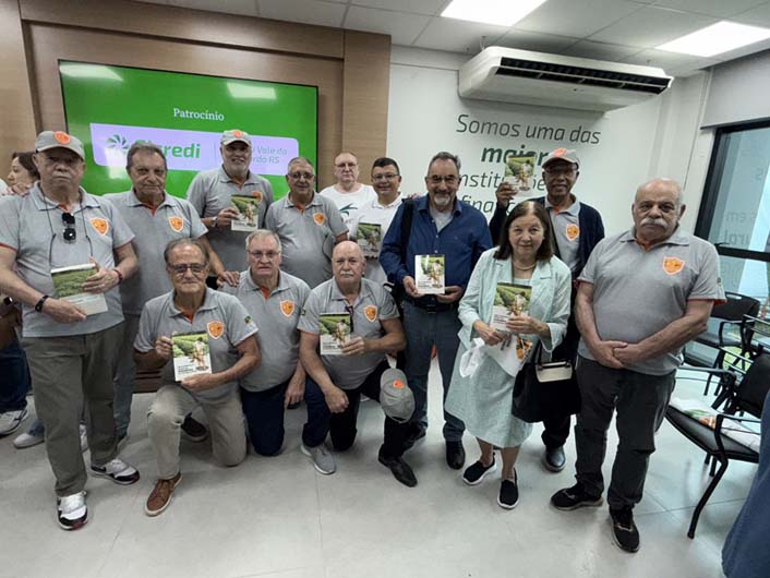 No último dia da 24ª Expoagro Afubra foi lançado no estande da Sicredi Vale do Rio Pardo o livro Aproveitamento Integral da Mandioca na Nutrição Animal, de autoria do saudoso engenheiro agrônomo Luiz Fernando Gerhard. Os livros foram autografados pela esposa do autor, Rosemary Breidenbach Gerhard, com a presença do filho Marcos Gerhard e Paolla Bagatini, do mano gêmeo Carlos Augusto Gerhard e a esposa Maribel Gerhard, do presidente da Sicredi, Heitor Álvaro Petry, integrantes da Turma do Cafezinho, leões e domadoras do Lions Clube Santa Cruz do Sul-Centro, Nivalda Steffens e muitos amigos mais.
