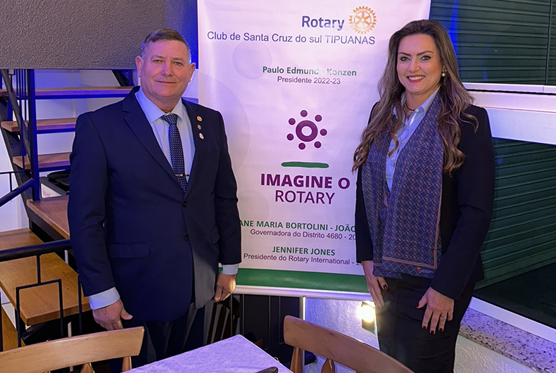 Paulo Konzen passou a presidência do novo conselho diretor do Rotary Club Santa Cruz do Sul-Tipuanas a Leonice Hentschke no começo da semana, no Marquês Parrilla München.