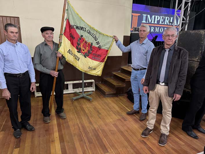 Elfôni e Benício Albano Werner e Heitor Petry estiveram na manhã de ontem no culto ecumênico em Boa Vista, nas comemorações do Dia do Colono e do Motorista.