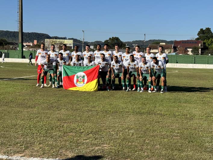 As equipes antes da entrada em campo, com a bandeira do Rio Grande do Sul