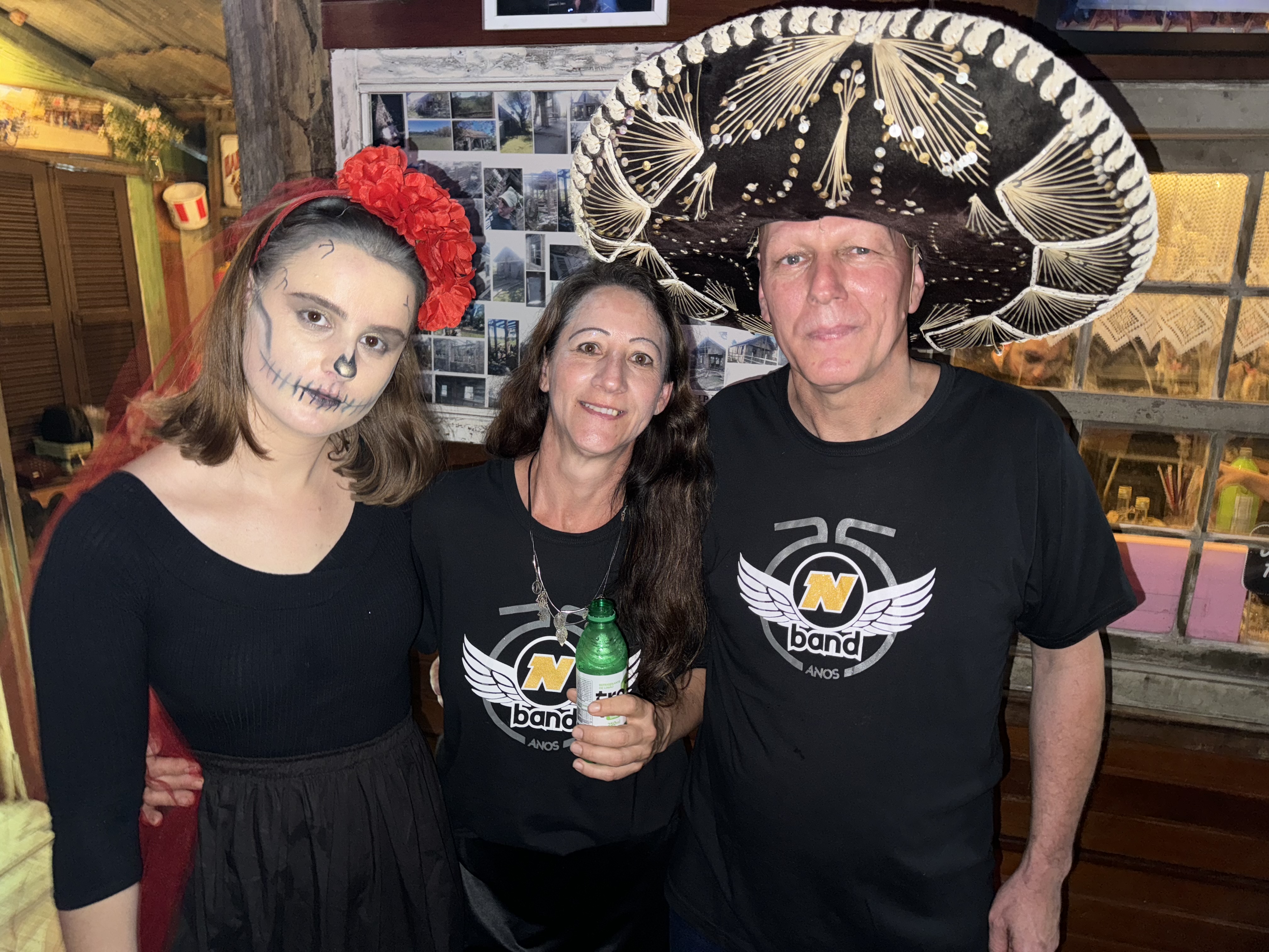 O conhecido músico veracruzense Neuri Putzke, da N’Band, completando 50 anos, e sua amiga Ana Júlia Barbieri comemoraram seus aniversários com uma tremenda e divertida festa à fantasia no Galpão dos Putzke. Foi aquela festa, do tipo de arromba, como as anteriores. E claro, com show da N’Band. Mais fotos dos persongens estão na versão digital da coluna.