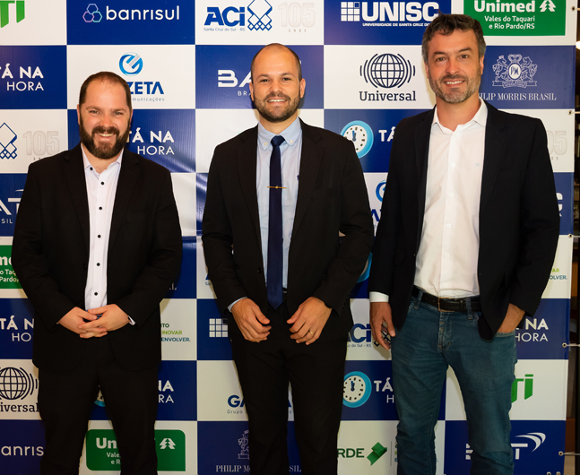 O primeiro Tá na Hora da Associação Comercial e Industrial (ACI) de Santa Cruz do Sul de 2024, realizado no começo da semana no Hotel Águas Claras, foi muito concorrido e contou com as presenças do presidente da Federasul, Rodrigo Sousa Costa, e do vice-presidente de Integração, Rafael Sittoni Goelzer. Também marcou a posse da nova diretoria da entidade, liderada pelo presidente Ário Sabbi, sucedendo a Cesar Cechinato, e do vice-presidente regional da Federasul, Tironi Paz Ortiz. Um dos assuntos desse encontro empresarial foi o aumento da alíquota do ICMS.