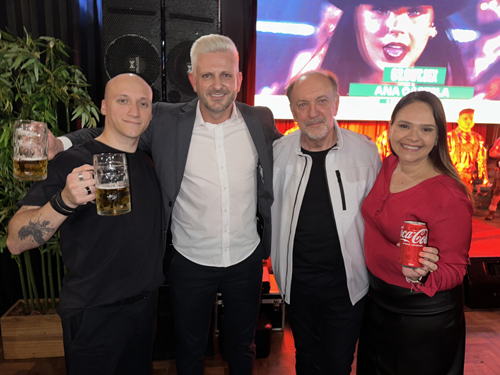 Vinicius Silva Tosca, Ricardo Bartz, Lauri Schoenherr e Sinara Oliveira, no anúncio dos shows da 38ª Oktoberfest de Santa Cruz do Sul e da cervejaria oficial