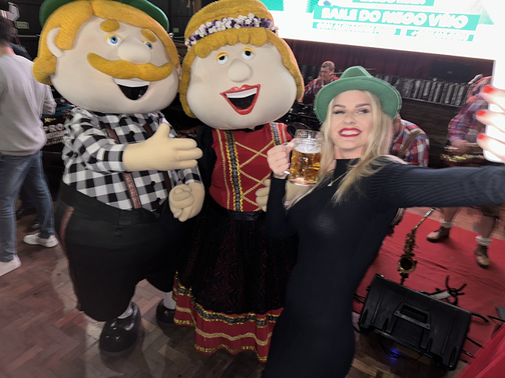 Fritz e Frida e a vereadora e princesa da 27ª Oktoberfest de Santa Cruz do Sul, Bruna Molz