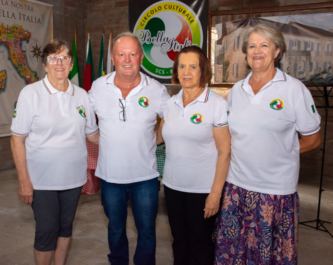 Um descontraído filó no anoitecer da terça-feira, 20, marcou a posse da nova diretoria do Circolo Culturale Bella Italia de Santa Cruz do Sul, com a liderança do presidente reeleito Marcelino Seolin e da vice-presidente Silvia Possenatto Nardi. O filó, que teve comes, bebes e cantos, foi realizado na futura sede do Circolo, nos altos da Marechal Deodoro. Na ocasião foram saudados os novos associados, Jocely e Darci Klein, e entregue os diplomas aos concluintes do curso de língua e cultura italiana.