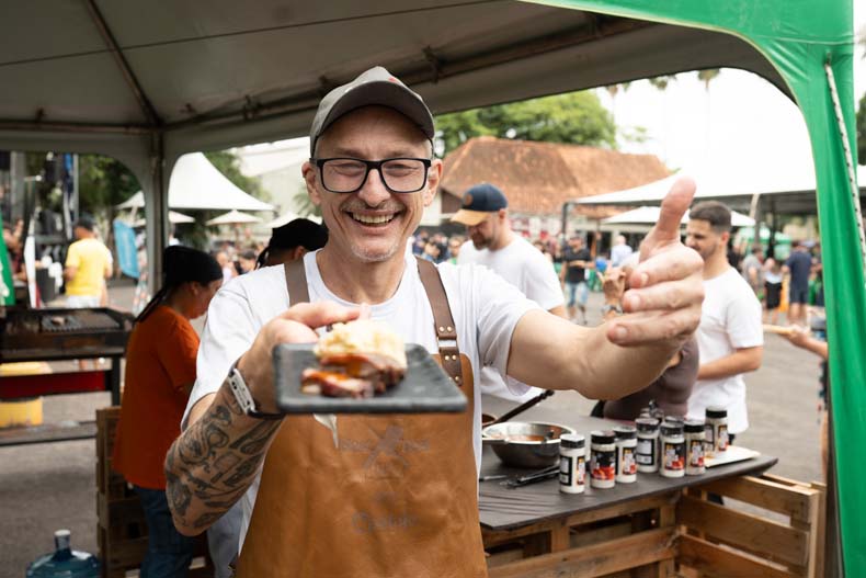 A primeira edição da Parrilla dos Vales, que resgata a cozinha rústica, foi realizada sábado, 7, no Parque da Oktoberfest com enorme sucesso. Cesar Spohr, já pensando em 2025, assinou a organização do evento, que ofereceu 12 estações de fogo – cada uma com um corte de carne e acompanhamentos de um chef com a coordenação do chef Marcos Livi, que por sua vez preparou o costelão do frigorífico Meat, e os suínos do Frigorífico Schender – mais espaço kids, espaço de charutos e a música das bandas Viúva Negra e Lobos da Estepe. Certamente mais um grandioso evento de Santa Cruz do Sul que veio para ficar.