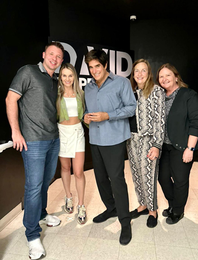 Em Las Vegas, Guilherme e Taís Tolotti Pauli, o famoso mágico e ilusionista David Copperfield, Liana Schuh Pauli e Sônia Schuh