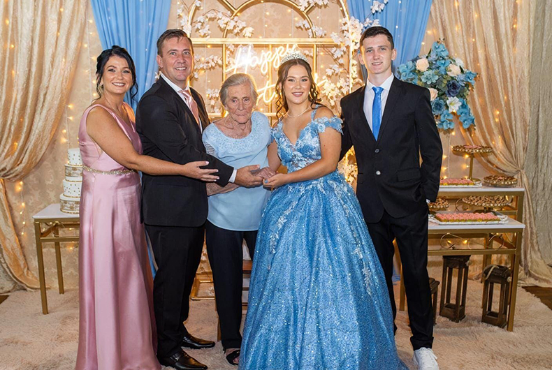 Nos salões da Acea em Vera Cruz, os pais Deise e Cássio Assmann, o mano Arthur Assmann e a bisavó Wilma Brandt, assessorados pela promoter Zoraia Pereira, da Celebrar, receberam os familiares e amigos para festejar os 15 anos de Gabriela Assmann. O ponto alto da festa foi a dança do grupo de danças tradicionais do CTG Candeeiro da Amizade, do qual a aniversariante faz parte da invernada juvenil.