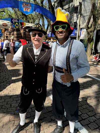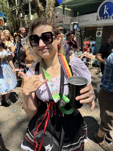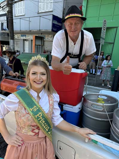 • Scheyla Escouto desfilou duas vezes no segundo desfile temático da 39ª Oktoberfest. Um na ala da Apae, com seu mano Carlos Alberto Escouto; e mais adiante, na ala da Agropel Linhares.